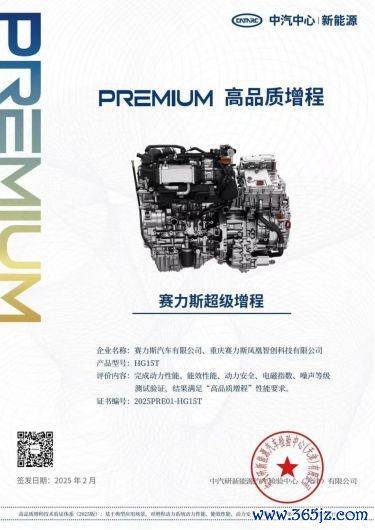 今年4月17日,全新一代赛力斯超级增程系统通过中汽中心“Premium Drive高品质增程”认证,成为首批通过该项认证的增程动力系统,再次印证了赛力斯在增程技术领域的技术积累和领先优势。